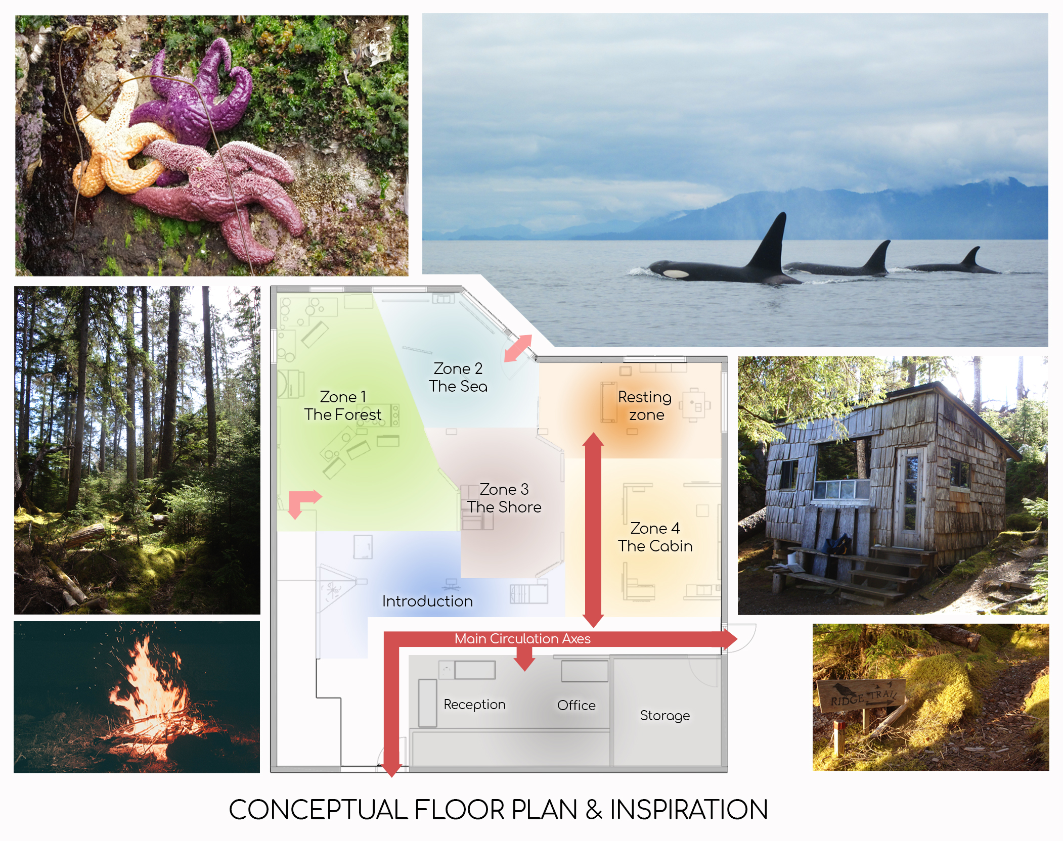 À partir du concept d’interprétation développé par Amy Vandal, muséologue consultante pour LBCS, nous avons traduit dans l’exposition les 4 lieux d’importance où se déroulent les activités de l’organisme :