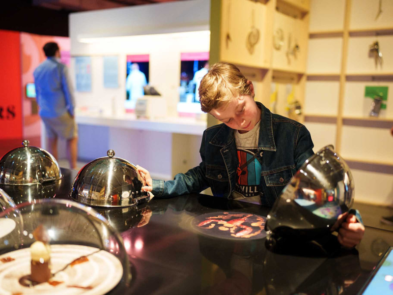 L’exposition propose de passer de la cuisine à la table à travers un parcours où vous mettez la main à la pâte, tentez des mélanges inédits et explorez saveurs et parfums.