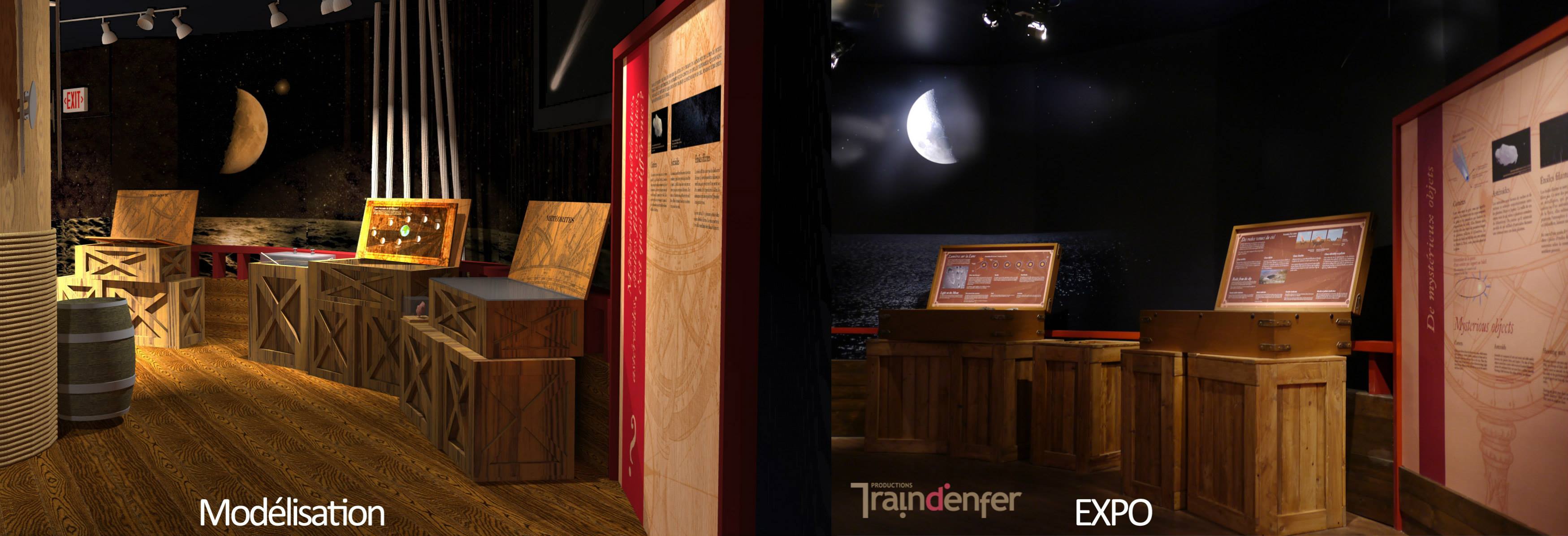 « Après avoir établi un corpus de base, nous avons demandé à nos muséographes, les Productions Train d'enfer de Montréal, de créer un concept d’exposition se démarquant de ceux des autres centres d’astronomie. Notre souhait était d'offrir aux visiteurs une expérience unique, surprenante, enrichissante et qui saurait, avant tout, éveiller la passion de la découverte du cosmos ! Un défi qui, à notre avis, a été relevé avec succès. »