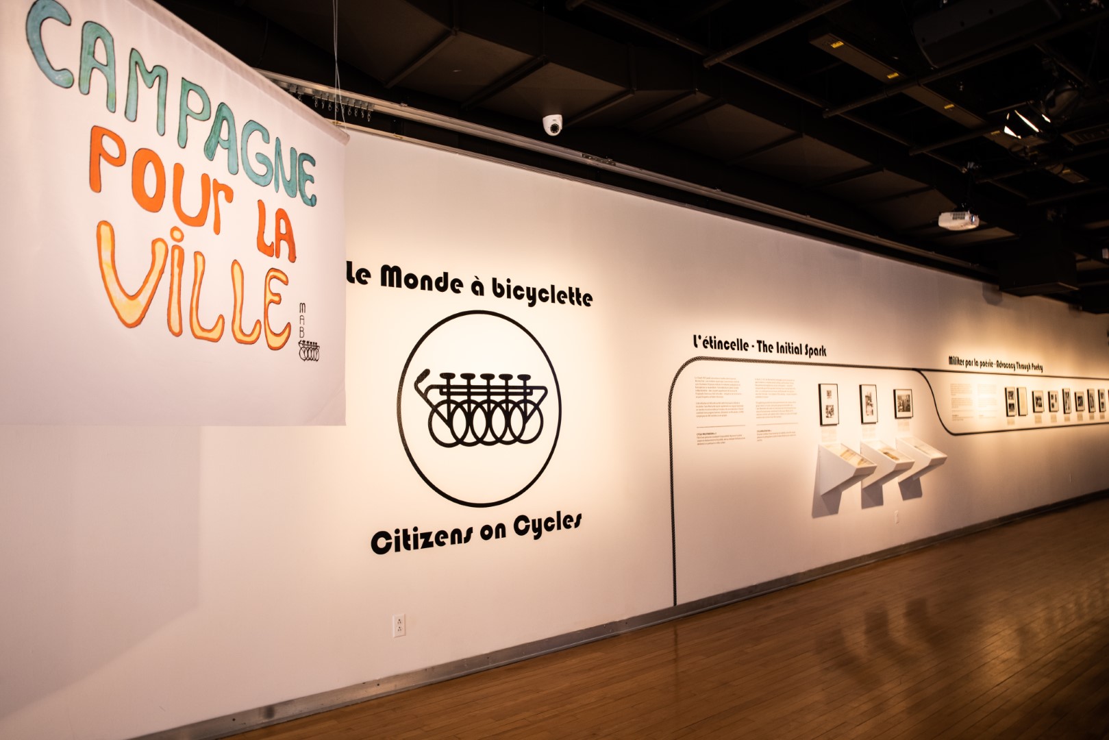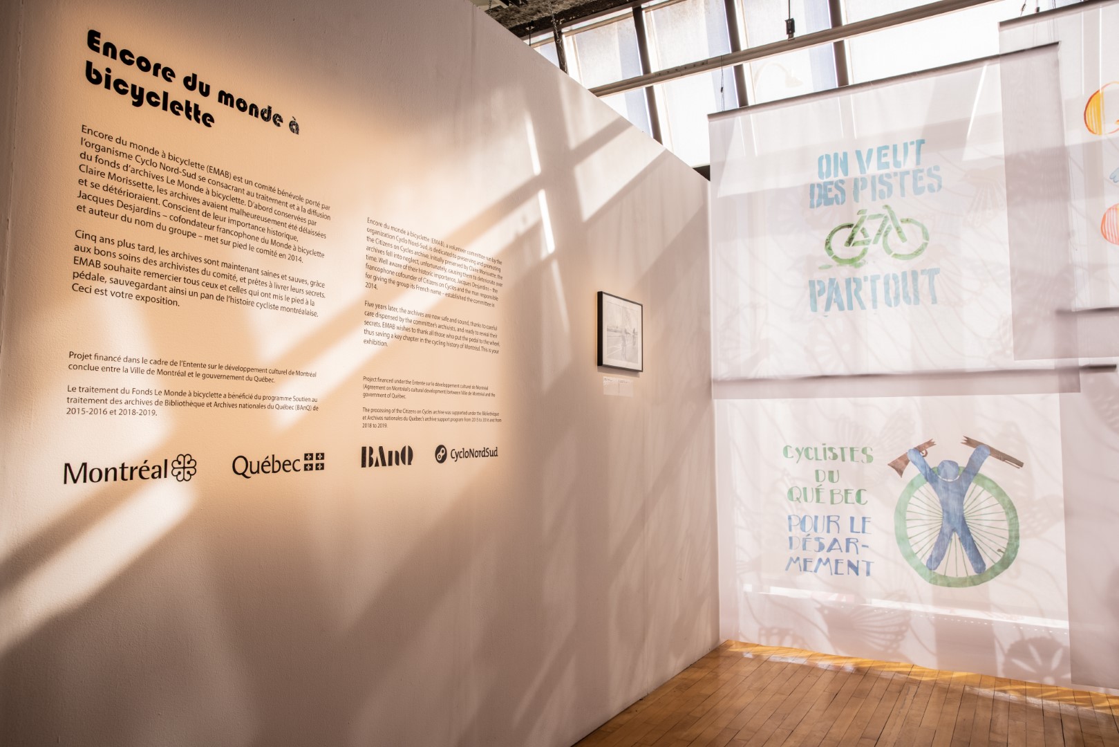 Exposition rétrospective grand public mettant en valeur les archives du groupe de militants montréalais le Monde à bicyclette.