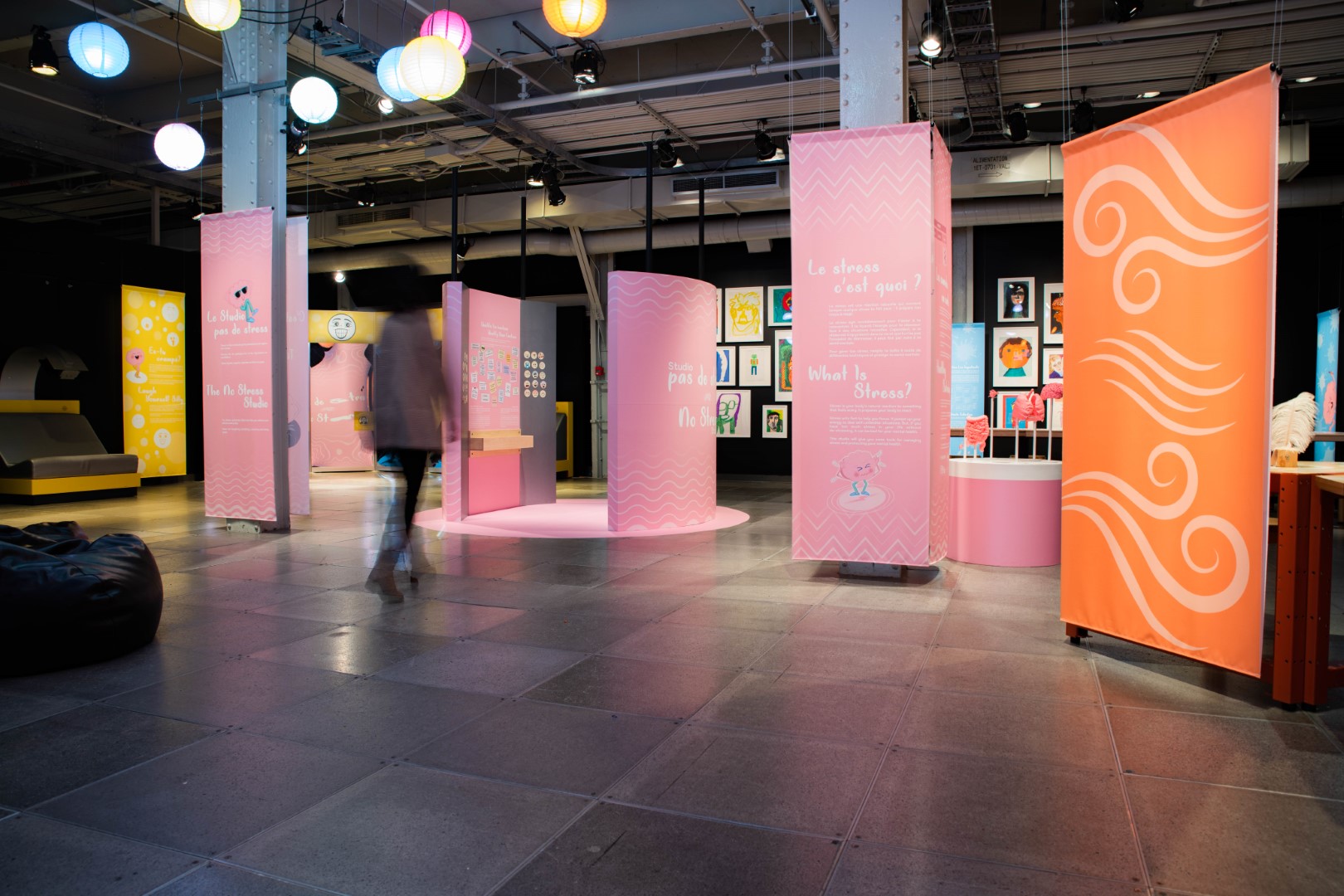 À l’automne 2019, le Centre des sciences de Montréal cherche à encourager la santé mentale et la santé globale. Un Studio pas de Stress est créé dans le but d’initier les enfants de moins de dix ans à mieux contrôler et réduire leur stress au quotidien.